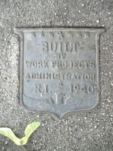 Clockwise from top left: 1. Plaque in sidewalk, Pawtucket RI. Proof that government works. 2. milestone indicating two miles to Providence Court House. Date unknown, North Main Street, Providence, RI at Pawtucket line. 3. Pawtucket Library, formerly old Post Office. They don’t make them like they used to. 4. Plaque on Slater Mill indicating the importance of this site in American History. Maybe not the Battle of Gettysburg, but probably as important in its own way.