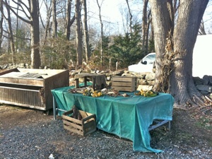Madison, CT. Clockwise from top left: 1. Boston Post Road is tranquil and scenic as it leaves the center of Madison, curving past the Madison Country Club golf course on the left. 2. One of the many interesting and beautiful gravestones in the Westside Cemetery. 3. Farm Stand that is done for the season. Remnants of last weekend’s produce include gourds. 4. Old Post Road is a quiet lane that passes behind the commercial establishments of Boston Post Road a few yards to the left out of the picture. This road passes through salt marsh to the East River where it stops at a Toll House from 1831. To cross the river today requires a detour through a marine landing parking lot to regain Boston Post Road and cross the modern bridge a few yards to the left of the old crossing.