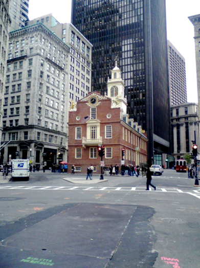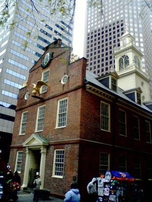 Directly behind the Great Cocodini stands a small red brick structure dwarfed by modern skyscrapers. This building, now called the Old State House, was formerly called the Town House, and was the seat of colonial government in the Massachusetts Bay Colony. The Town house was also mile 0 in Boston, the point from which all distances were measured. This is where the Boston Post Road begins.